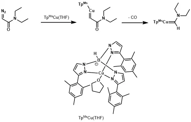 - ↑ María Álvarez; Maria Besora; Francisco Molina; Feliu Maseras; Tomás R. Belderrain; Pedro J. Pérez. Two Copper-Carbenes from One Diazo Compound. Journal of the American Chemical Society. 2021, s. 4837–4843. doi:10.1021/jacs.1c01483. PMID 33733762.