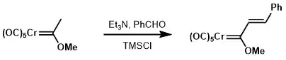 K provedení aldolových kondenzací Fischerových karbenů postačují slabší zásady, například triethylamin, než u karbonylových sloučenin.[12][13]