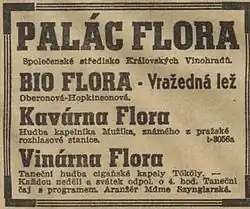 - ↑ Národní listy, 14.3.1928 (Inzertní příloha):Novostavba Bio Flora