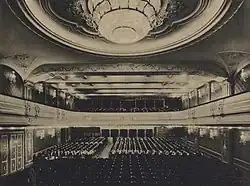 Sál o rozměrech 24,3 × 14,7 m byl umístěn v podzemí paláce a vyzdoben v rokokovém stylu. Byl vybaven orchestřištěm, balkonem, šatnami, kuřárnou, bufetem a sociálním zařízením. Vstupní část zdobily (a dodnes zdobí) mramorové sochy muže a ženy v nadživotní velikosti, držící v rukou svitky filmu. Jejich autorem byl sochař Emanuel Kodet. Sochy představují akty muže a ženy rozvíjející filmový pás. Od května 1931 začalo kino promítat zvukové filmy.[3]