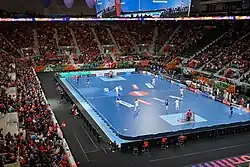 Hra se zahajuje vhazováním míčku na středovém bodě mezi dvěma protihráči.[6] Každý tým si během zápasu může vzít třicetisekundový timeout.