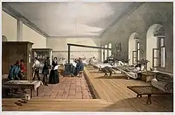 Skutečná situace ve vojenské nemocnici, zřízené z kasáren ve Scutari, byla mnohem horší, než psaly anglické noviny. Ve špinavých kasárnách, zamořených krysami a blechami, na holé podlaze leželi nazí ranění vojáci, kteří trpěli nedostatkem hygieny a absencí základní péče. Nemoci jako tyfus, cholera a průjmy zde byly častější příčinnou úmrtí než samotná zranění. Zásadním problémem pro sestry, které chtěly pečovat o nemocné, byly překážky v armádní administrativě i pohrdání lékařů, kteří sestry zprvu odmítali.[6]