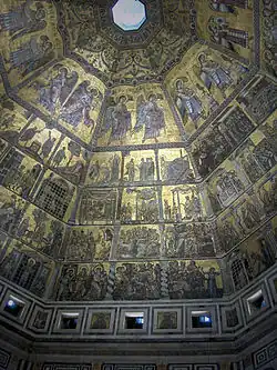 Nejstarším dochovaným rozsáhlým projektem florentské školy je mozaiková výzdoba interiéru kopule chrámu Battistero di San Giovanni (Křtitelnice sv. Jana) ve Florencii. Práce začala kolem roku 1225. Ačkoli se na projektu podíleli i benátští umělci, toskánští umělci vytvořili expresivní, živé scény s důrazem na citový obsah oproti dosud převládající byzantské tradici. Florentský malíř Coppo di Marcovaldo (kolem 1225 – kolem 1276) je autorem ústřední postavy Krista a je nejstarším florentským umělcem zapojeným do tohoto projektu. Tomuto umělci jsou někdy připisovány deskové obrazy Panny s dítětem vytvořené pro kostely řádu servitů v Sieně a Orvietu. Po florentské kostely Santa Maria Novella, Santa Trinita a Ognissanti byly koncem 13. a počátkem 14. století provedeny podobné práce iitalským malířem Ducciem di Buoninsegna (kolem r. 1255-1260 - kolem r. 1318-1319), který působil v Sieně a Toskánsku. Kolem roku 1285 vytvořil pro chrám Santa Maria Novella deskové obrazy Madona s dítětem a šest andělů nebo Madonna Rucellai. Tyto obrazy zobrazující Pannu a Dítě obklopené anděly na zlatém pozadí jsou nyní v galerii Uffizi. Ukazují vývoj naturalistického prostoru a formy a možná nebyly původně zamýšleny jako obrazy oltářní.