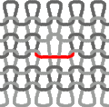 - u osnovních pletenin: Neprovázaná nit musí probíhat podélně nebo příčně přes nejméně jeden řádek a mimo toho může vést přes více sloupků[3]