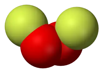 Fluorperoxyl je molekula, která je stabilní pouze při nízké teplotě. Lze jej připravit z fluoru a kyslíku:[12]
