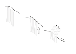 - jehlovitý led – částečky půdy jsou vyzdviženy rychle zmrzlou vodou v podobě jehel a po jejím tání ohybem padají ve směru sklonu svahu.