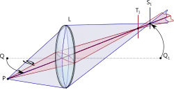 Paprsek, dopadající na libovolné místo povrchu čočky se uvnitř čočky láme podle Snellova zákona a podle stejného zákona se lomí na protilehlém povrchu. Kromě toho se malá část světla odráží zpět.