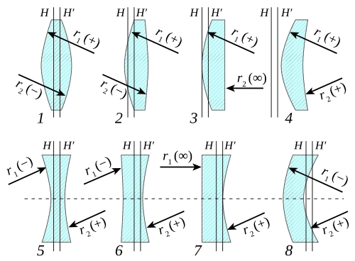 Čočky jsou většinou kulové, tj. alespoň jeden jejich povrch je tvořen částí kulové plochy. Ve zvláštních případech se používají čočky jiných tvarů, viz níže.