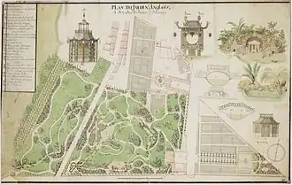 Park byl podle plánu z roku 1787 rozdělen na část okrasnou se vzácnými stromy, keři a květinovou zahradou, a část užitkovou, v níž se pěstovaly například melouny a brambory.