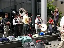 Amatérští muzikanti v americkém městě Seattle na folkovém festivalu