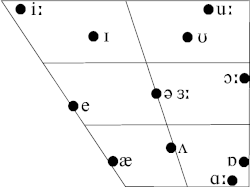 | Zavřená | iː | ɪ | uː | ʊ | ||
