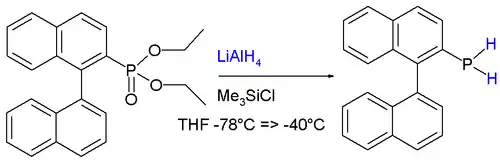 Při přípravě trimethylfosfinu se používá trifenylfosfit namísto silně elektrofilního PCl3:[7]
