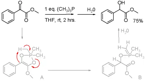 - ↑ W. Zhang; M. Shi. Reduction of activated carbonyl groups by alkyl phosphines: formation of α-hydroxy esters and ketones. Chemical Communications. 2006, s. 1218–1220. doi:10.1039/b516467b. PMID 16518496.