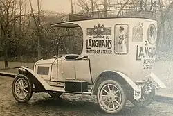 Automobil s reklamou na ateliér J. F. Langhanse, Praha