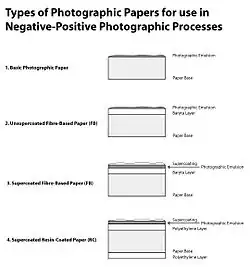 Všechny fotografické papíry se skládají z fotocitlivé emulze, která obsahuje halogenidy stříbra rozptýlené v koloidním materiálu (například želatině), a z papíru obyčejného, barytovaného či laminovaného nebo plastové podložky.