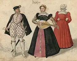 U ženského oděvu byl kladen důraz na štíhlý pas, takže živůtek byl vyztužován šněrovačkou. Sukně byly prvně splývavé, postupně se začaly tvarovat obručemi do širokých rozměrů. Sukně byly ušity z několika dílů různých barev, ty nejluxusnější byly šity z hedvábí a brokátu. Díky této módě byla žena považována za ozdobu královských dvorů.