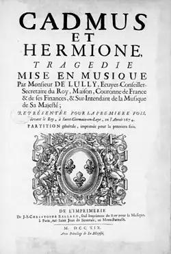 Francouzská opera začala psát svou historii na dvoře krále Ludvíka XIV., když Jean-Baptiste Lully uvedl v roce 1673 svou první operu Cadmus et Hermione (Kadmos a Harmonie). Jednalo se o první významnou francouzskou operu.[p 1][1] Ačkoli zde již dříve bylo několik pokusů o její vytvoření; nejvýznamnější z nich byla nejspíše Pomone (Pomona), první opera s libretem ve francouzštině, od Roberta Camberta. Lully a jeho libretista Philippe Quinault vytvořili tzv. tragédie lyrique neboli tragédie en musique, formu francouzské opery, v níž jsou vedle árií významně zastoupená také taneční čísla a sborový zpěv.[2]