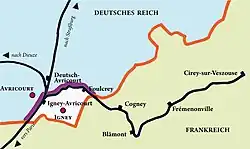 Železniční stanice Igney-Avricourt na železniční trati Paříž-Štrasburk připadla dle mírové smlouvy Německu. Odbočující železnice Igney-Avricourt - Cirey se stala izolovaným provozem odříznutým od zbytku francouzské sítě. Tím byl ohrožen oběh místní ekonomiky. Německo a Francie se poté dohodly v dodatečné dohodě dne 12. října 1871 v Berlíně o revidovaném vymezení v postižené oblasti: Francii bylo povoleno ponechat si vesnici Igney, část katastru Avricourt, vlakové nádraží Igney-Avricourt a celou železniční trať Igney-Avricourt-Cirey. Na oplátku nesla náklady na novou německou pohraniční stanici, kterou postavila Reichseisenbahnen v Alsasku-Lotrinsko, několik set metrů východně od stávající stanice Igney-Avricourt, která dostala název Deutsch-Avricourt. Novou francouzsko-německou hranici zde nyní tvořil severovýchodní okraj náspu trasy mezi výjezdem z nádraží Igney-Avricourt a zastávky Foulcrey.