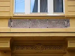 Pamětní deska Františka Šimáčka v Jeruzalémské ulici