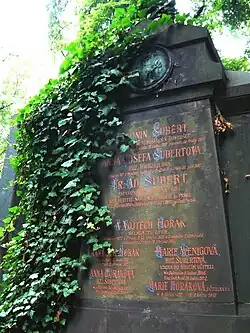 - ↑ Matriční záznam o úmrtí a pohřbu farnost při kostele sv.Václava na Smíchově