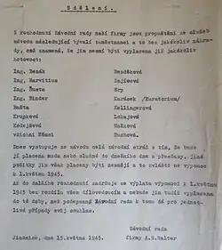 - ↑ Akciová společnost Walter, továrna na automobily a letecké motory, Praha XVII - Jinonice in Státní oblastní archiv v Praze (State Regional Archives in Prague), Archivní 4, 149 00 Praha 4, Fond Walter, a.s., No. NAD 1914, karton 50, složky 749-759