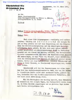 - ↑ Sdělení K.H.Fankovi [online]. Praha: 1941 [cit. 2020-03-07]. S. 113. Dostupné v archivu pořízeném dne 2020-06-09. (německy)