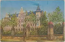 - 1909-1911 Katolický ústav pro vzdělávání učitelů Kongregace školských bratří, Praha XIX - Bubeneč, čp. 299[7] V roce 1915 jej zakoupil kardinál Skrbenský pro Arcibiskupské gymnázium.[8] V letech 1923-1925 přestavěn a rozšířen Františkem Havlenou.[9][10]