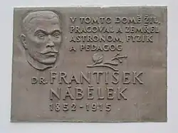 - ↑ HACAR, Bohumil. Moravský astronom prof. Dr František Nábělek. Matematika, fyzika, informatika. 1947, čís. 3, s. 54–57. ISSN 0035-5550.
