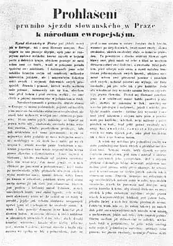 Mezitím se v Praze začal připravovat Slovanský sjezd. Thun s jeho pořádáním souhlasil, když se mu Palacký zaručil, že na něm slovanské národy vysloví podporu habsburské monarchii. Palacký však ve své intenzivní snaze vtisknout sjezdu austroslavický ráz příliš neuspěl, neboť do Prahy se sjelo i značné množství zástupců ze slovanských území mimo habsburskou monarchii (zejm. delegáti polské emigrace ve Francii nebo ruský emigrant Michail Alexandrovič Bakunin), kteří na zachování monarchie neměli žádný zájem. Palacký tedy sice z pozice sjezdového předsedy sjezd 2. června zahájil, nedokázal však nabídnout takový program, který by dokázal překlenout různorodé zájmy zástupců jednotlivých národů. Sjezd byl předčasně ukončen již 12. června kvůli vypuknutí povstání v Praze.[11]