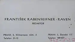 | Pseudonym | František Raven, František Rabenseifner, Batavius R. F. |