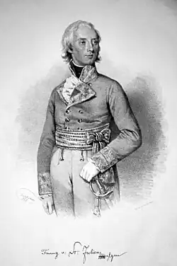 - ↑ Služební postup Františka Xavera Saint-Juliena in: SCHMIDT-BRENTANO, Antonio: Kaiserliche und k.k. Generale (1618-1815); Vídeň, 2006; s. 86 dostupné online