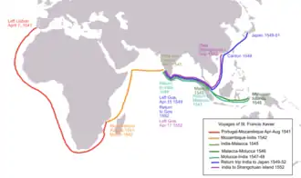 - ↑ Zdeňka Vlčková: Misionářská činnost Františka Xaverského – proměny církevního obrazu, Brno 2007, bakalářská diplomová práce (str. 14); dostupné: http://is.muni.cz/th/145954/ff_b/Frantisek_Xaversky.doc (navštíveno 22. 8. 2008)