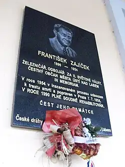 - ↑ a b ZAJÍČEK, František (5. 2. 1896 Ústí nad Labem – 7. 7. 1954 Praha) – Ústav pro studium totalitních režimů. www.ustrcr.cz [online]. [cit. 2022-09-26]. Dostupné online.