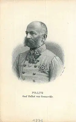 ![]() Hrabě Franz Folliot de Crenneville jako c. k. polní podmaršál a císařský generální pobočník (litografie, 1862) | |