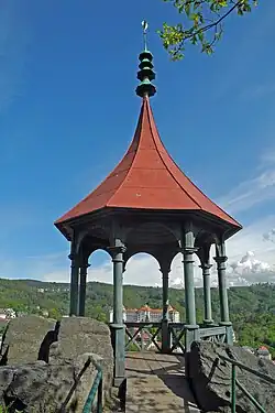 - ↑ Mayerův gloriet, dřevěný vyhlídkový altán [online]. Karlovy Vary: Infocentra města Karlovy Vary [cit. 2020-11-29]. Dostupné online.