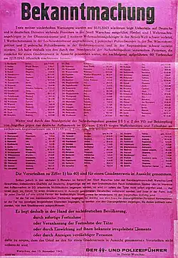 Vyznačoval se neobvyklou ukrutností i na poměry panující v okupovaném Polsku, pravidelně pořádal veřejně přístupné masové popravy a praktikoval braní a popravy rukojmích ve velkém. Polský podzemní stát jej za ukrutnosti a masové vraždy páchané na polském národě odsoudil k smrti. Popravu vykonala na příkaz generála Fieldorfa, velitele Kedywu, zvláštní jednotka Agat, složená z harcerů Šedých řad (viz Akce Kutschera).