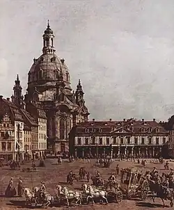 Kostel Panny Marie (Frauenkirche) byl od počátku vybudován jako kostel luteránský, a to přesto, že kurfiřtem Saska byl v té době katolík Fridrich August II. (1670-1733). Ten byl ovšem původně protestant jako celá jeho rodina, konvertoval však roku 1697 ke katolicismu, aby mohl získat polskou královskou korunu.
