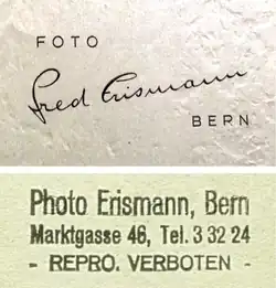 - ↑ Berner Theaterzeitung Spielzeit 1956/57, 42. Jahrgang: Fred Erismann – 25 Jahre Hausphotograph am Stadttheater
