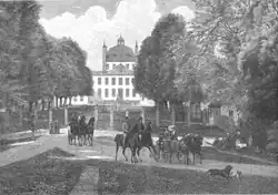Před hlavní budovou se rozprostíralo osmiúhelníkové nádvoří, obklopené jednopatrovými křídly. Z východní strany se k hlavní budově přimykala plocha jízdárny a dlouhé stáje. Z východní strany k hlavní budově přiléhala oranžérie a tzv. markraběcí dům. Oranžérie byla s hlavní budovou spojena nevelkým tajným průchodem, aby králové a dvořané mohli procházet do kaple, aniž by si "zamokřili nohy".