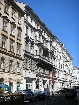 Dům v Berggasse 19, v němž dnes sídlí Freudovo muzeum, knihovna, archiv a sekretariát jeho společnosti, byl vystavěn v roce 1891 podle plánů architekta Alfreda Stierlina. V letech 1881–1889 na této adrese bydlel Victor Adler, spoluzakladatel Sociálnědemokratické dělnické strany Rakouska. Sigmund Freud se v září 1891 se svou rodinou nastěhoval do mezaninového bytu nalevo od schodiště a ordinoval až do roku 1908 v přízemí. Tato první praxe se od roku 1976 využívá jako sekretariát a archiv společnosti. Až do roku 1908 žila Freudova sestra, Rosa Grafová, v mezaninovém bytě napravo od schodiště. Teprve poté, co se odstěhovala, si Freud zařídil v jejím někdejším bytě novou ordinaci. Po dalších 30 let byl mezanin domu v Berggasse 19 až do emigrace 4. června 1938 centrem, z něhož se psychoanalýza rozšířila do celého světa. Dnes je celá budova, která je programově nazývána jako „Dům Sigmunda Freuda“, v majetku města. Od roku 1974 je chráněna jako kulturní dědictví podle Haagské úmluvy na ochranu kulturních statků. V roce 1953 byla na fasádě domu instalována pamětní deska s nápisem: „V tomto domě v letech 1891–1938 žil a působil profesor Sigmund Freud, tvůrce a zakladatel psychoanalýzy.“[2]
