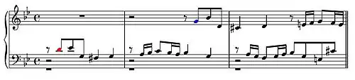 Poté, co téma zazní ve všech hlasech fugy, se expozice uzavírá.