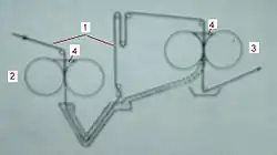 Schematický nákres vpravo znázorňuje funkci dvojitého barvicího fuláru: