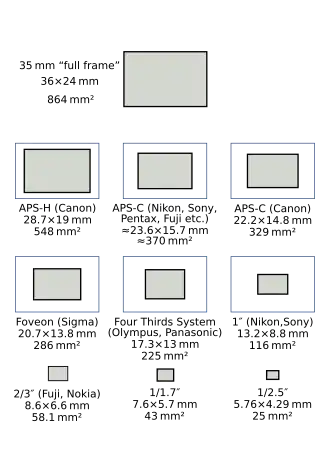 - ↑ MAIO, Alyssa. Camera Sensor Sizes (and Why They Matter). StudioBinder [online]. 2020-04-19 [cit. 2020-12-17]. Dostupné online. (anglicky)