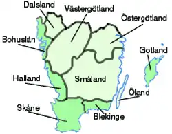 V tomto článku byl použit překlad textu z článku Götaland na anglické Wikipedii.