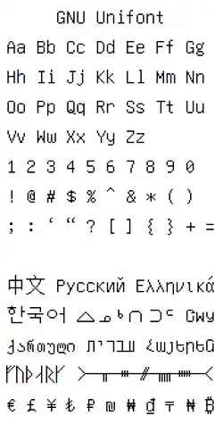 GNU Unifont je rastrové písmo s dvojitou šířkou, které je k dispozici pod svobodnou licencí GNU GPL a které pokrývá celou rovinu BMP ze standardu Unicode.