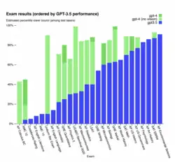 GPT-4 navíc prokázal své schopnosti při skládání odborných zkoušek, včetně zkoušky z onkologie[11], inženýrské zkoušky[12] a zkoušky z plastické chirurgie.[13]