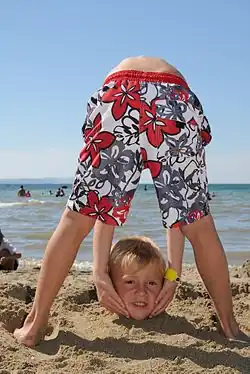 Komik přijde na scénu s houslemi a smyčcem, kterého však použije na podrbání svých zad. Načež se chystá něco zahrát. Před tím si ovšem cpe vatu do uší. Nakonec jako vyvrcholení (topper) nabídne vatu i publiku.