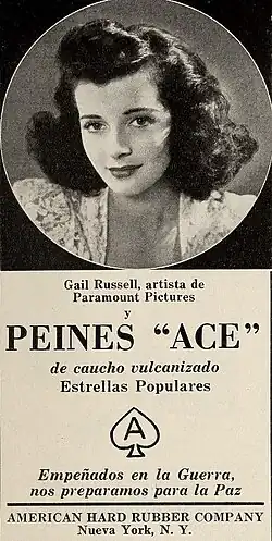 ![]() Fotografie Gail Russellové na pohlednici z 50. let | |
