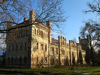 - Novogotický zámek (kaštiel) – rozsáhlá čtyřkřídlá stavba ve stylu tudorovské novogotiky ze 40. let 19. století