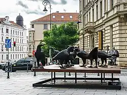 - ↑ sochařská realizace: Smečka - Profil objektu. encyklopedie.brna.cz [online]. [cit. 2023-04-26]. Dostupné online.